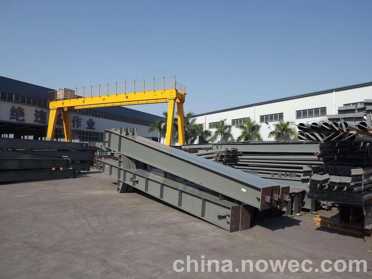 条状单元一般沿长跨方向分割,其宽度约为1~3个网格,其长度为l2或l2/2(l2为短跨跨距)。块状单元一般沿济宁网架平面纵横向分割成矩形或正方形单元。每个单元的重量以现有起重机能胜任为准。条(块)与条(块)之间可以直接拼装,也可空一网格在高空拼装。由于条(块)状单元是在地面拼装,因而高空作业量较高空散装法大为减少,拼装支架也减少很多,又能充分利用现有起重设备,故较经济。这种安装方法适用于分割后网架的钢度和受力状况改变较小的各类中小型网架,如两向正交正放四角锥、正放抽空四角锥等网架。
